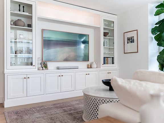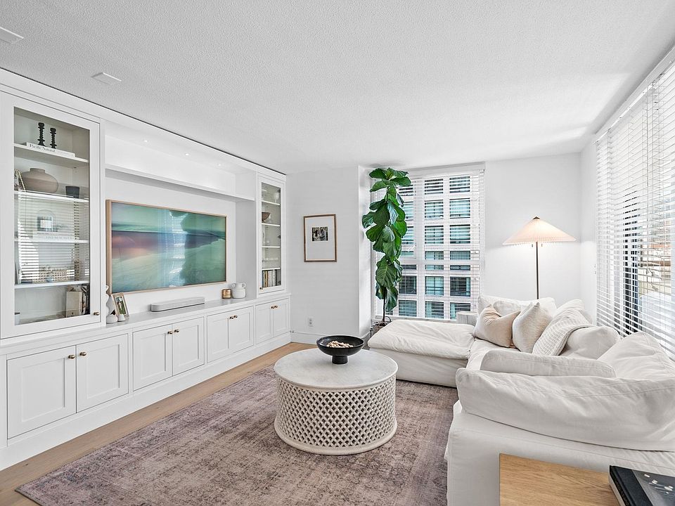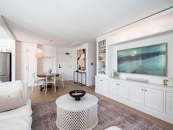 Welcome to this beautifully renovated 2-bedroom, 2-bathroom home nestled in a rainscreened building.With warm white oak flooring throughout the living spaces, the layout ingeniously separates the bedrooms from the inviting living room, which features custom built-ins & floods of natural light. The kitchen, boasting oak shelving, brass fixtures, & high-end appliances, seamlessly extends to the spacious patio-perfect for entertaining. Retreat to the primary bedroom offering stunning city & mountain views, ample space for a king-size bed plus both bathrooms gleam w/ their new vanities. 2 parking & storage, plus access to a gym, pool. and multipurpose room. Just steps from the sunset beach, this location offers easy access to various amenities, with Yaletown-Beach district & West End just a stone's throw away.