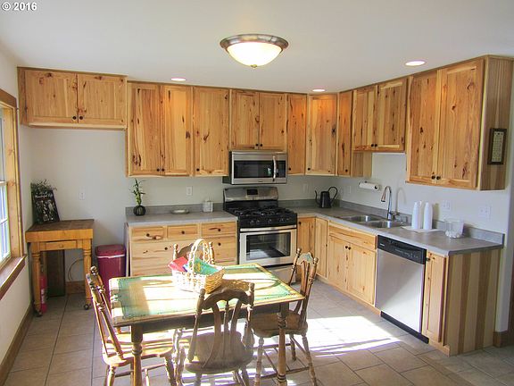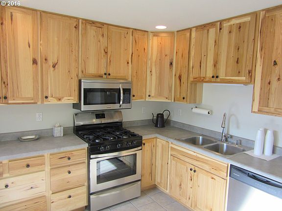 Enjoy & relax in this easy maintenance, energy efficient, ADA friendly home. This home has been lovingly rebuilt from the foundation up, thru the hickory kitchen cabinets, master bedroom with a private covered deck, to the quality metal roof. Home has new flooring and fresh paint throughout. Fruit tree, off street parking. Graded lot so no gutters needed. Covered patio and raised deck. High quality metal roof. Come see this home today!