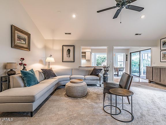 Beautiful patio home in the community of Dataw Island is looking for a new owner. The home backs up to the 10th fairway on Cotton Dike golf course designed by Tom Fazio. Ranch home features two bedroom and two full bathrooms, large living space and inviting sunroom. Some recent improvements include new windows, paver patio, paint, carpet and luxury vinyl plank flooring in sunroom and more. The home sits in a quiet cul-de-sac. Dataw Island has so much to offer including two 18 hole golf courses, tennis, bocce, pickleball, indoor and outdoor pools, community center, dining options, walking trails, dog run, kayak launch, full service Marina and much more. Club membership is required for all homeowners.