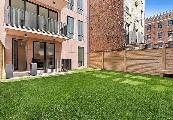 Welcome to 1404 Bushwick Avenue, the premiere luxury condo building in Bushwick! This brand new, boutique 10 unit elevator building offers one and two bedroom homes along with a fantastic residents' lounge on the roof, and a rooftop with sweeping views of Manhattan, Brooklyn and beyond. Apartment 1 is a beautifully designed 1,415 square foot two bedroom, one and a half bath home that features a 767 square foot private backyard, finished rec room with soaring 10ft ceilings, washer/dryer, and amazing closet space. Enter to discover a comfortable living and dining area boasting stunning wide-plank oak hardwood flooring and 9 foot ceilings, all taking in abundant natural light through oversized floor to ceiling windows with a glass door leading to your own private outdoor oasis. The horseshoe kitchen is complete with misty gray granite countertops in a leather finish, custom soft-close white cabinetry with open shelving, and high end stainless steel appliances by Bertazzoni, Blomberg, Bosch and Haier. As you work your way past the kitchen, you'll find a comfortable primary bedroom that easily fits a queen size bed as well as complete suite of furniture. This room comes outfitted with a custom built walk in closet. Off the living space you have a second, garden facing bedroom, perfect for guests or a home office! Designer baths are complete with mosaic tiled flooring with radiant heat, an illuminated vanity mirror, and deep soaking tubs. Taxes and common charges total $804/month making living in this luxury building a no-brainer! The downstairs opens up to an expansive 640 square foot finished rec room, perfect for a media room or home gym. The space comes complete with a powder room and sliding doors to 70 square foot patio! 1404 Bushwick is located just 1 block to the Chauncey Street J/Z trains and 4 short blocks to the Wilson Avenue L. Local amenities like Salud Bar & Grill, The Evergreen, Father Knows Best, Little Skips East, Macdonough Cafe, Evergreen Playground, Pita Point, and more make Bushwick a special place to call home. The complete terms are in an offering plan available from the Sponsor, under New York State Department of Law File No. CD#19031. Equal housing opportunity.