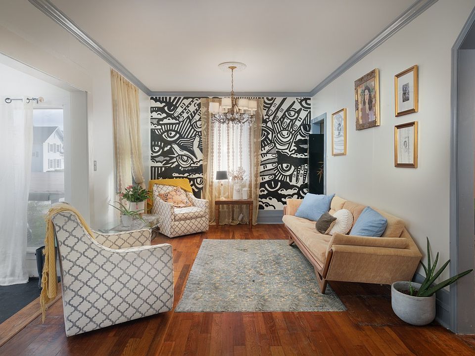 2/1 Rate Buy-Down available with possible lender credit with preferred lender with full-priced offer! Experience the lake life in the Village - Nashville's best-kept secret. Huge amount of square footage for this listing price! Fun eclectic village home on lovely Clarke Street with mural artwork in living room commissioned by owner by artist Frances Berry and custom gold-leaf numbers by LSJ Signs. This home has a formal living room, huge dining room or flex room AND a log-cabin-inspired giant rec-room looking out across the yard and Rachel's Walk park. Lots of room for a play-room, craft room, office, studio, or laid-back, cozy living space. Serene views from the screened in porch! Large back yard. Carport. Walk to pizza, floating lake restaurant, new community center, coffee shop, post-office, pharmacy, Amish deli, groceries, and the lake. Two full bathrooms, primary bedroom with walk-in closet, 2nd bedroom with large closets, electric fireplace, original hardwoods, large sun-porch, historic light-fixtures, washer/dryer and fridge will stay.