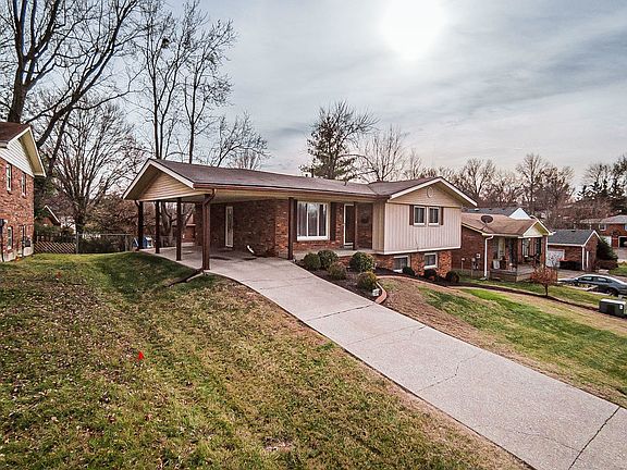 Walkout brick ranch 4-5 bedrooms 2 full baths in excellent condition. Property is located on cul de sac, 5 minutes from I-264, hospital, elementary school, grocery, etc. Community has sidewalks through most of area for walking to school, visiting neighbors and staying fit. House has 29' carport, fenced backyard, outside storage, and manicured landscaping. Enter home at covered front porch, spacious living room to open eat in kitchen and dining room. Kitchen updated with granite counter tops, ample cabinets, pantry. Main floor bath updated with bedroom entrance and dressing table area . Finished walk-out basement with 4th bedroom, other room used as 5th bedroom, full bath, kitchenette area, fireplace in large entertainment/family room. Patio doors to outside patio. Furnace 2015, Prism windows, aluminum/vinyl trim on extrior.See today!