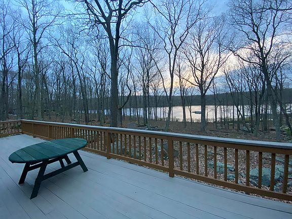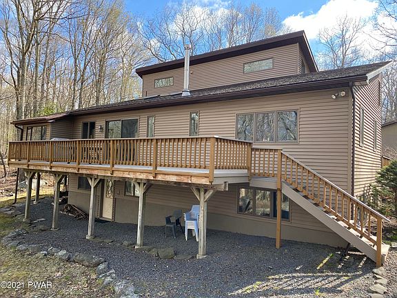 LAKEFRONT ON HIDDEN LAKE!!! VERY RARE with PANORAMIC SUNSET VIEWS. 2.23 Acres with over 130 feet of LAKE-FRONTAGE! Home features include: 4 Bedrooms, 2 Full Baths, Open Floor Plan, Cathedral Ceilings, Granite Counters, Wood Stove, Knotty Pine Ceiling, Skylights, Bamboo & Hardwood Floors, Ductless A/C Unit, Finished Walkout Basement, Large Decks, Stone Fire Pit, 2 Car Detached Garage and Beautiful Landscaping. Hidden Lake Estates is a fantastic location near shopping, restaurants & other activities but tucked away privately. The lake is known for swimming without much worry of debris, Non-power boating, kayaking and fishing (BIG FISH HERE). Lake Wallenpaupack is a 2 minute drive away. Keep a boat at a marina on the Big Lake (Wallenpaupack) and enjoy the peaceful serenity of Hidden Lake.