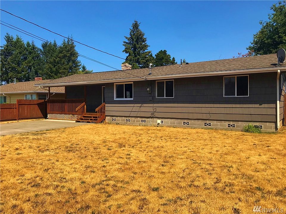 Perfect starter or excellent rental property. Neat & clean 3 bed. 1.5 bth home just shy of 1300 sq.ft. of spacious living. Lg living rm. w/wood stove, beautiful oak wood flooring,vaulted ceilings & freshly painted. Great open kitchen to the dining area w/new hickory cabinets & perfect space for entertaining guests. Step out just off the living rm, relax & enjoy the fully fenced back yard. Situated on bus line, close to schools, park, sports hub, shopping & I-5 to make for an easy commute.