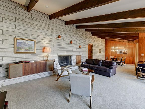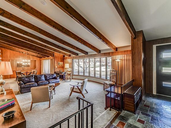 This gorgeous midcentury modern ranch home has been completely remodeled. Over 2800 square feet on main level sitting on two large lots(almost an acre). Featuring 4 Bedrooms 3 Bathrooms that were all remodeled. As you walk in and Step into the foyer notice the views of outside coming into the enormous Living Room/Dining area w/Fireplace. Beautiful Built-ins. Amazing Kitchen has been totally gutted & redone. New Appliances, Custom Cabinets galore with Granite! New Luxury Vinyl Floors, Windows come with custom blinds, New Lighting, Island over looking Dining Room with inside Grill &Views of New Gas Slate Fireplace in Family Room, New Anderson Windows. 1/2 Bath off Kitchen. Beautiful New Hardwood Floors flow down hall to all 4 bedrooms. Two share the newly remodeled Jack & Jill Bath with cultured marble, Remodeled Full Bath in Hall features double sinks with granite. Freshly Painted Basement with Fireplace #3. Sprinkler Front/Side, Attached 2.5 garage, See agent remarks for more