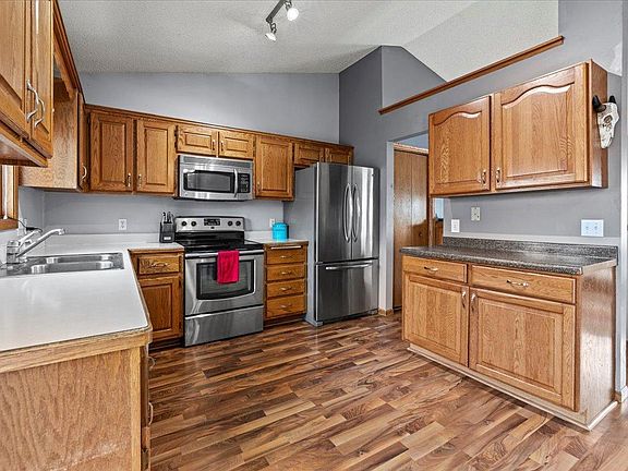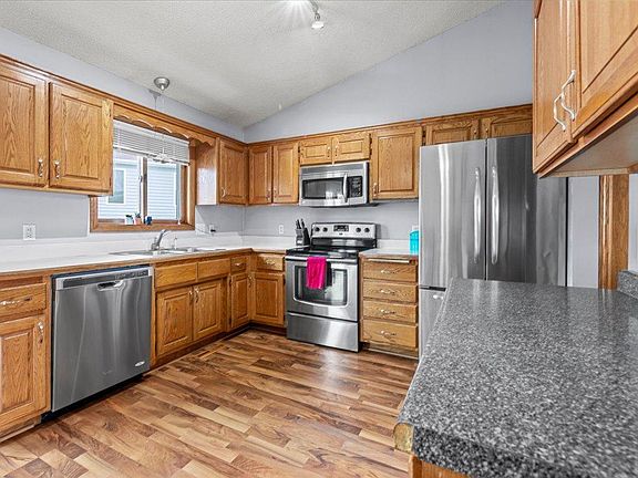 Discover this charming 1,960 sq ft home, ideally located on a corner lot next to Maple Knoll Park. Featuring four bedrooms and two bathrooms, this residence offers comfortable living and convenient amenities. The open-concept main level, with its vaulted ceilings and large bay window, creates a bright and airy atmosphere. The kitchen, complete with stainless steel appliances and abundant storage, is perfect for culinary enthusiasts. Enjoy the convenience of a three-car garage and a spacious primary bedroom with a walk-in closet. The lower level provides additional living space with two bedrooms, a full bathroom, and a family room featuring a bar for entertaining. Enjoy time outdoors on the deck or large paver patio. With easy access to shopping, schools, and parks, this home offers the perfect blend of comfort and convenience.