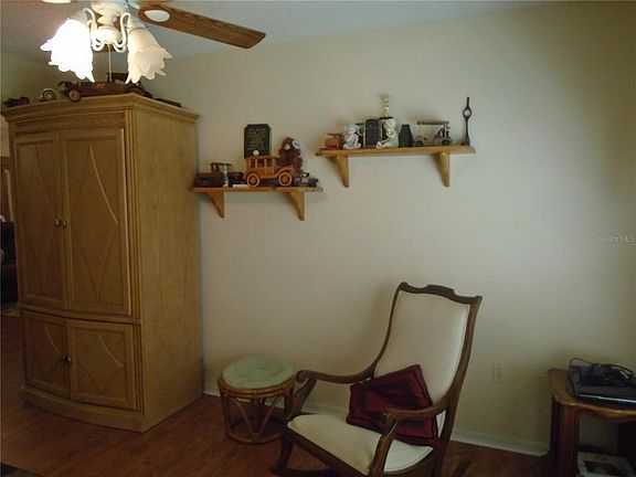 Pride of ownership shows in this home! Once you arrive you'll notice the lush landscaping w/walkway to the double front doors. As you enter you have soaring ceilings & tile flooring in the foyer that lead you to the kitchen. This kitchen has wood cabinets w/granite counters w/tile backsplash set on a diagonal pattern, pantry closet, breakfast bar and a wonderful breakfast nook area w/build in hutch to display your favorite pieces. The kitchen overlooks the Dining & Living rooms so entertaining is easy plus designer style engineered hardwood flooring. Just off the living room the pocket door opens to the 3rd bedroom which is currently being used as a den/home office w/wood flooring & ceiling fan. The master bedroom has plenty of room for all your pieces plus ceiling fan and two walk in closets. The master bath has dual sinks w/wood vanity and walk in shower w/glass enclosure. The guest bedroom has ceiling fan & carpet and the guest bath has wood vanity, linen closet, tub w/shower. The laundry room has washer, dryer and cabinets. The garage has been extended in length so you can fit your golf cart or work bench, pull down stair case to attic and a utility sink. Newer roof installed 2011 w/solar powered attic fans. Both the living & dining rooms has sliders to the screened lanai that has a fabulous view of the pond & golf course that you and your guest will enjoy! This gated golf community offers many activities and events that your social calendar will always be full! Community features are heated pool & spa, restaurant & lounge, performing arts center, arts & crafts room, computer & library room, game room w/pool tables, tennis courts, golf course, pavilion w/bocce, horse shoes & shuffleboard, fitness center.