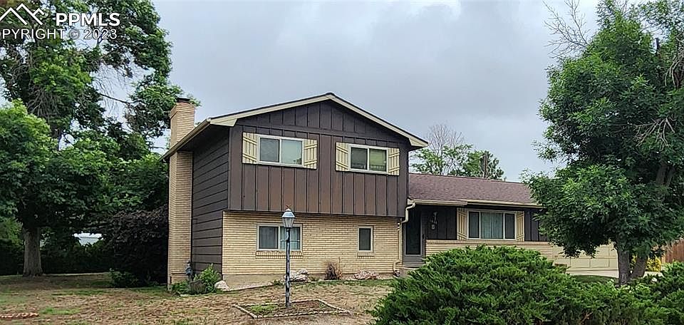 See Agent Remarks for very important information! Arguably this is the best opportunity for a Single Family Home in El Paso County (yes, the entire County!) with 2130 sq ft, 4 Bedrooms, 3 baths, and 2 car garage, on a huge (.25 acre) lot. Plus it's in District 20! Four-level design (Tri-Level with Basement) with vaulted ceilings on main level (Living Room, Dining Area, and Kitchen) allows for an open, airy feel, yet provides separate living areas. Great creative opportunity: complete cosmetic upgrades and refurbishment and a few repairs - update and/or highlight 1970's era design and finishes. Kitchen features informal eating space, extensive counters, and abundant cabinetry. Separate Dining Area with view of Living Room is open to Kitchen and overlooks lower level Family Room. Fireplace with gas log insert, walk-out lower level Family Room, vaulted/beamed ceilings on main level, newer vinyl windows on south side. 17' x 23' Basement Bonus/Exercise/Hobby Room. Level, highly useable quarter acre corner lot with Pikes Peak view and mature trees and shrubbery, to include several fruit trees. Plenty of room for play equipment, entertaining, pets, and gardening. District 20 schools. 4 Bedrooms, 3 Baths. Sold “As Is.” HOA membership and dues are voluntary. This is a must see!