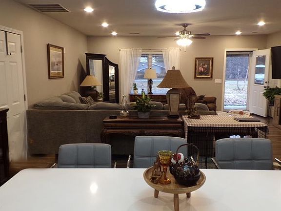 Newer beautiful pole barn home with over 2000 sq. ft. - private newer office with private entry and parking. Open concept, attractive kitchen with king size walk-in pantry. Beautiful light fixtures, huge walk-in shower, and other bath tub and shower. New crown molding, covered front porch and deck in back. 2 year old 1200 sq. ft. garage with 14 ft. doorway - heated workshop and storage room plus 2 car attached garage, new driveway with retainer stone wall. Fenced in yard. 24-hour notice for showing, seller's forgot to file tax exemptions. Taxes in 2022 were $975 and with exemptions would go lower.