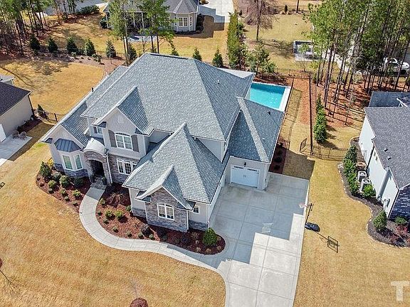 Custom Exeter Builder Home in the heart of Heritage, Wake Forest. This home features an open floor plan large island, gas range & Prepping kitchen with an extra oven. The butler pantry with wine fridge leads to the dining room with Coffered ceiling. The downstairs master features tray ceiling and large bath with walk in shower, freestanding soaking tub. Full bath/bedroom on 1st floor. The large screened/window porch features a cosy fireplace, decking for grill and custom patio/pool area with sun shelf.