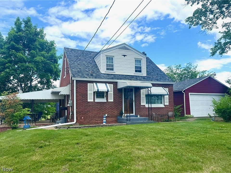 Solid brick bungalow is ready to move right in. This 3 bed 1 bath home has so much to offer its next owner including all appliances and detached 2 car garage with electric opener. Updates include new carpet and fresh paint throughout the first floor in 2023, fresh paint on exterior windows and fence, new toilet 2023, updated 200 Amp electric service, leaf guards on gutters, and new roof in 2017. The entertaining possibilities do not end when the rain comes with the 20x14 covered side patio right off of the perfectly appointed wide galley kitchen with gas range and refrigerator. The living room features a large picture window, solid wood front door with high quality Andersen storm door opening up to a covered front porch. The upstairs features a very large sitting/bedroom with built in storage all around. The basement has all glass block windows, lots of storage and a laundry room washer and dryer that do convey. There is even a bonus shower! Call soon for your private viewing!