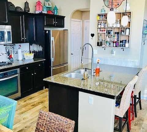 Hard to find Harlan Ranch 4 bedroom in a beautiful community! You will be delighted with the light & airy feel of this relaxing home! Gorgeous plank vinyl flooring compliment the large windows in the downstairs living area that open to one of the largest yards in the neighborhood. Designer touches such as upgraded chef style kitchen & computer nook are sure to please. Truly a must see!