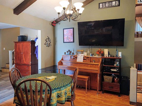 Spacious tri-level home located on a corner lot in an established neighborhood. Step inside to find beautiful beamed ceilings in the open living/dining area. The kitchen features new flooring, dishwasher, and microwave/vent as well as a breakfast bar and tons of cabinets! The formal dining room boasts a wood burning stove and could easily be used as a family room or den. Currently being utilized as a pantry, the small room on the east side of the home could be an office for working at home. There are 3 bedrooms, 1 bath on the upper levels of the home and 2 bedrooms, 2 baths in the lower levels. A fantastic family room with wood burning fireplace is located in the west lower level along with a new laundry room (shared with a bathroom). The privacy fenced backyard has a newer deck with storage underneath for lawn equipment, toys, or play area. There is also a cozy brick patio area for relaxing. The double car attached garage has its own breaker box, electric heater, and RV outlet. This home is a must see, so book your appointment today!