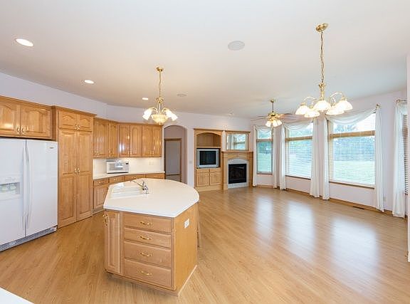 Look no further...this immaculate ranch is move-in ready and features hardwood floors, split bedroom plan for added privacy, large windows throughout to bring in the natural light, neutral to make decorating a breeze, formal and informal dining areas, fabulous open kitchen with Corian counter tops, island with breakfast bar, under cabinet lighting, walk-in pantry, and an abundance of cabinet and counter space. The hearth room is the perfect space for you to sit back and relax and includes a gas fireplace with marble tile surround, built-in TV nook, and door to the deck. You will love spending time in your spacious master suite complete with large windows, door to the deck, trayed ceiling with ceiling fan, built-in speakers, and private bathroom with his and her Corian vanities, separate shower, whirlpool tub, his and her walk-in closets. The finished basement is the perfect space to just hang out and features gorgeous built-ins, carpeting, gas fireplace, wet bar, built-in desk, and great storage areas!