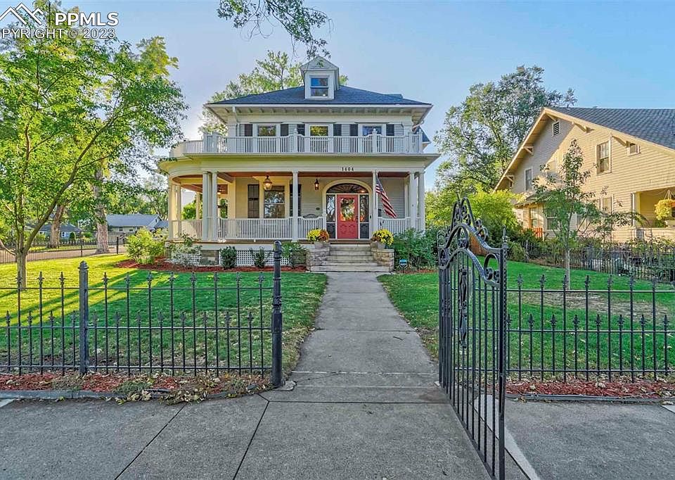 Rare opportunity to own a magnificent home in the coveted Historic Old North End! Designed by Thomas MacLaren, the craftsmanship and attention to detail are exquisite! Meticulously restored resulting in an Award for Excellence from The Historic Preservation Alliance of COS. Perched on a large corner lot behind a wrought iron gate, this stately home welcomes you with an inviting wrap around porch to enjoy year round! The majestic grand foyer's elegant curved staircase and coffered ceilings provide an impressive entrance! Enjoy quarter sawn oak floors, 10ft ceilings, 9 in baseboards, crown molding, fresh paint, and century specific touches. Off the foyer is a formal living room which leads in to a spacious family room offering a gas fireplace with stone surround, built in shelving and hand carved details throughout. It opens to the elegant large formal dining room which adds to the ease of entertaining family and friends. The updated kitchen features granite, a gas stainless steel range, and prep sink. Second family room w/private bath is perfectly placed for an office, sitting area, or bedroom. Escape to the Primary Retreat oasis with a separate dressing area. The spa shower has 2 heads, marble floors, and a soaking tub. 3 additional bedrooms, 2 baths, and laundry room complete the floor. The basement offers an interior and exterior entrance to the 5th bedroom which has a fireplace and private bath. Enjoy additional storage areas and a sauna! Finished attic space makes a great bonus room, and there are 6 storage spaces! Garage restored; lighting, electrical, sewer, plumbing, radiator, and many windows updated for efficiencies. Multiple outdoor living areas, a lush lawn, and extra parking complete this charming home! Enjoy old world sophistication while being centrally located near Downtown, Colorado College, Olympic Training Center, shops/restaurants, healthcare. This home provides the lifestyle you are dreaming about! *Home was Pre-Inspected