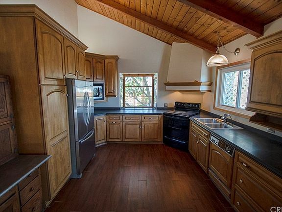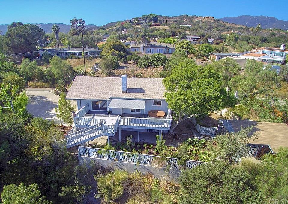 Take a leisurely drive up Old San Marcos Pass Road to this charming street. Pop down the lane while soaking in the amazing VIEWS of the ocean, islands and mountains. Although this property is on a full acre, enjoy neighboring ACREAGE surrounded by oak trees, avocado trees and lots of luscious landscaping. As you enter the courtyard, you will find yourself surrounded by lovely greenery to the front door. Inside, find two nice size bedrooms downstairs that share a charming bathroom complete with old fashioned tiles. The bonus room, which has a fireplace, is the perfect place for a family room, play room, office or craft room. Upstairs you will find a great room featuring gorgeous mid-century wood beam ceilings that open out to a large deck running across the back of the house. The vistas go on forever. View the beautiful Channel Islands while you soak in the sights of orchards and surrounding mountains. The kitchen is open and airy and has been remodeled with gorgeous custom cabinetry, an antique sideboard, views galore and a sweet dining nook. Upstairs you will also find a master bedroom and bathroom. A kitchen exit out to the deck makes this the perfect home for entertaining. Enjoy the deck day or night while soaking in the hot tub overlooking these rare Santa Barbara views. Walk down the deck stairs and you will find lovely landscaping and a covered patio on your way to the workshop and side yard. The workshop is a perfect "work" space or an office. The location of this home truly represents Santa Barbara living at its finest. A must see for the Buyer that would like privacy, acreage, and a home that highlights both ocean and mountain views.
