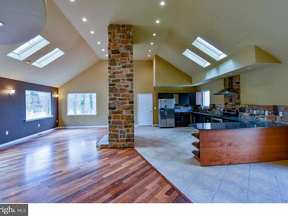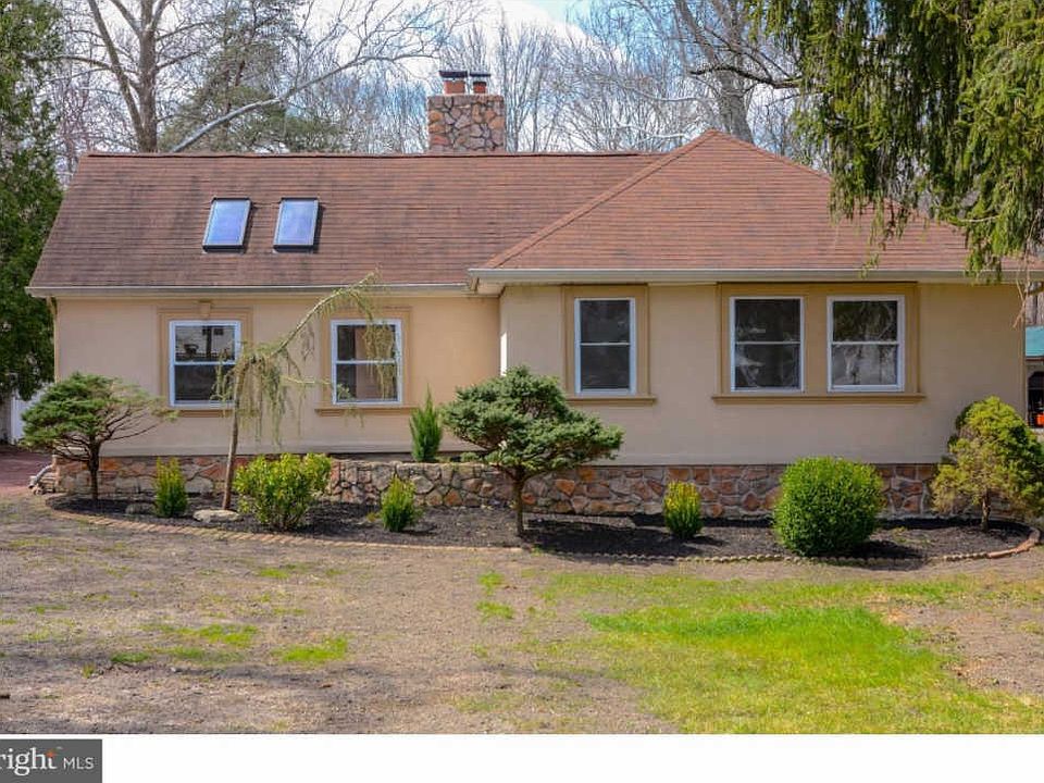 Welcome to this beautifully remodeled home located in desirable Burlington Twp. This home definitely has the "WOW" factor. As you pull up to the home you will notice the professionally landscaped yard as well as the gorgeous stucco and stone facade sitting on over 2 acres of land, the . Walking into the home you will surely be impressed with the neutral professionally painted living room, hardwood floors surrounding a floor to ceiling stone fireplace. You will be in awe walking into the eat in kitchen with the open lay out, granite countertops, custom cabinets, tile backsplash and stainless steel appliance package and gorgeous custom floors. The charm and architectural structure in this home is a must see!!! The master bedroom is your personal retreat featuring a beautiful brick fireplace, gorgeous floors, his and her closets and a custom tiled bathroom with a gorgeous soaking tub that overlooks your beautiful property of over 2 acres backing up to a wooded lot. There are 3 other great sized bedrooms with deep closets, hardwood floors and neutral paint. There are also 2 other full baths custom tiled, new fixtures and professionally painted. As you enter the backyard to the home you will notice your new custom trek deck and over 2 acres of land backing up to a private stream and gorgeous picturesque woods. This home features a certified HVAC system, new french drains in the full basement and the owners have removed the septic system and and replaced it with public sewer. This one will not last, make your appointment today.