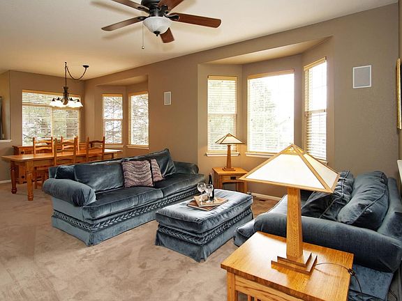 Awesome Corner Lot Ranch-Style Condo with a finished basement in Villa Carriage Homes at Pineridge. This 3 bedroom, 3 bath home has designer paint, newer carpet, wood and tile floors. The kitchen features a large eating space with a ceiling fan, newer Anderson sliding door, black & stainless steel appliances, Corian countertops, a double granite sink, pantry and wood floors. Both the great room and dining room have bay windows and there is also a gas fireplace and new stonework and ceiling fan in the great room. The master bedroom has 2 walk-in closets & a 5 piece master bath. A rec-room OR study/office, bedroom, 3/4 bath and HUGE finished storage room are located in the basement. The attached 2-car garage has a private driveway. This home with a wrap-around patio is adjacent to the Castle Pines North Golf Course and in walking distance to Daniel's Park with it's hiking & biking trails and views. I25, DTC and C470 are convenient to this home. Location, Quality and Value.