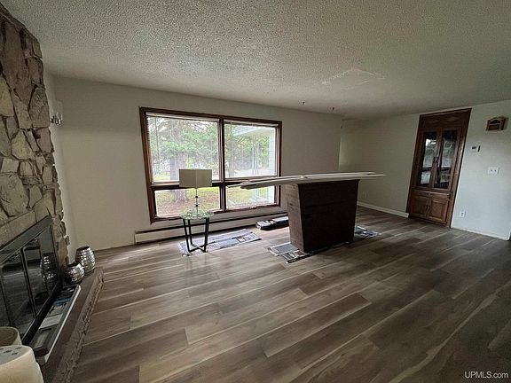 Located in the city of Marquette on a dead-end street with more than half an acre, this home may be the right fit for you! This classic 1976's ranch-style home features 3 bedrooms, 1 bathroom, a beautiful stone fireplace, and metal roofs on the house and garage! The backyard is a lovely, wooded lot with a 1200-square foot garage that can easily fit 3 vehicles! Inside the home, the entryway leads into the large living room with the fireplace as the focal point. Conveniently the kitchen and laundry area are separated by a pocket door from the living room. The 3 bedrooms and bathroom are on the other end of the house. A wood stove and hook-up for a half bathroom are in the basement. New flooring throughout first floor. As well as updated electrical throughout. This home is minutes from Downtown Marquette, Lake Superior, Marquette Mountain, and the Noquemanon Trail System. Whether you love one-floor living, need space to roam, or looking to purchase a home to put your finishing touches on, this may be the perfect fit for you!