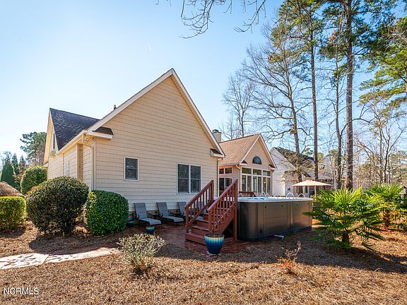 Don't miss this meticulously maintained home in Cypress Landing, Eastern NC's premier golfing community. Come home to a beautifuly manicured lot that includes new and mature plantings. Invite your friends and family over to enjoy your backyard oasis that includes a cozy deck and massive stamped concrete patio with a panoramic view of the 17th fairway. This 3 bedroom 3 bath home features single level living, hardwood flooring, molding details, vaulted ceilings. The master suite includes a walk-in shower, double vanity, soaking tub and a large walk-in closet. Volume ceilings in Formal DR, GR and Foyer. Kitchen has solid surface counters, travertine backsplash and stainless steel appliances. The great room leads to a four season room with wall to wall floor to ceiling windows giving you a panoramic view of your backyard oasis and golf course. The bonus room above the garage includes custom built-ins and a full bath. Plenty of walk-in attic storage. The 2 car garage has ample space for all your tools and toys.
