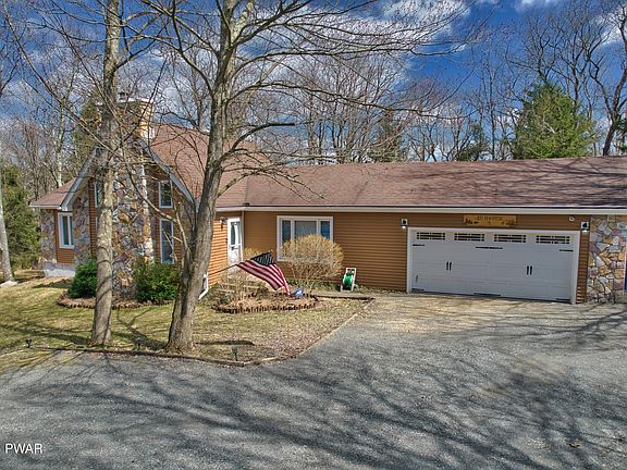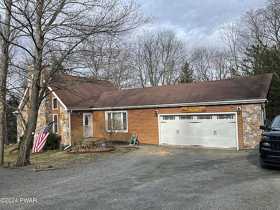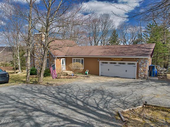 A lakefront dream home. This modern, well-maintained home is lakefront on Lake Wynooska near Promised Land State Park. The home boasts 3 bedrooms, 2 full baths, Bamboo and tile flooring with carpeting in the bedrooms. The Living Room has a wood burning stove and cathedral ceiling. The dining room, off the kitchen and living room, has room to seat 8. The family room is just off the dining room with doors to separate it from the dining room. There are large windows in the Family Room overlooking the backyard and lake. The primary bedroom with a private full bath and a second bedroom are on the main floor. The third bedroom is on the second floor. The backyard has a view of the lake with steps down to the water and dock. There are modern appliances and fixtures in the home. Heating is electric baseboard and the wood stove. For cooling, there are 2 mini split units. The home is wired for a portable generator which is not included. There are too many features to list. Come and see this home and property for yourself. Don't wait, schedule a showing today.