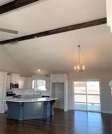 Open, airy, and spacious split entry floor plan with main level living. Beautiful hardwood flooring in the kitchen/dining area, white cabinetry, walk in pantry and large island. Stunning vaulted ceilings with rustic beams and gas fireplace in living room. Main floor master suite features walkin closet, large soaking tub, separate shower and double vanity. Finished lower level includes family room and fourth bedroom. Located on a culdesac lot and within walking distance to the elementary school! 2020-06-18