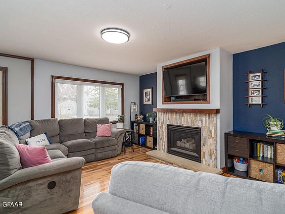 Welcome to your dream home! Nestled in a quaint neighborhood just steps from the pool, elementary school, and church, this stunning two-story residence offers the perfect blend of comfort and style. Featuring 5 bedrooms and 2.5 baths, this remodeled gem has been meticulously upgraded from top to bottom, ensuring modern luxury at every turn. As you step inside, you're greeted by the warm embrace of hickory hardwood floors that flow seamlessly throughout the open concept dining/living room and into the kitchen. The spacious living area features a cozy gas fireplace with a cool surround, hearth and mantle, creating the ideal spot for gatherings with family and friends. The kitchen has been upgraded with newer SS appliances, quartz countertops, clean white cabinetry and extra pantry units for your culinary needs. The main floor also has a nicely remodeled 3/4 bathroom with laundry and a neat back locker area. Upstairs has a large primary bedroom with walk-in closet and a pass through door to a remodeled full bath and 2 additional bedrooms. Basement is recently finished with second family room, guest bedroom, finished storage area, and another large unfinished storage/utility room. The attached guest suite/granny pad/art studio/she shed/man cave located with access off the back of the house is a unique feature you won't find anywhere else. Backyard is fully fenced with patio and apple tree and creates access to the massive insulated/sheetrocked/heated garage and alley. This home has so many great qualities including custom blinds, newer shingles, newer windows, newer gutters/soffits, metal siding, and newer AC unit. Check it out before it's too late!
