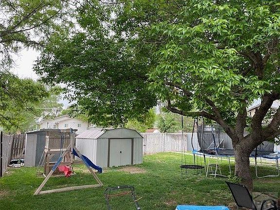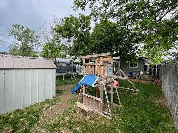 This three bed, one bath home has a spacious fenced in backyard with an automatic sprinkler system along with 2 sheds. A one car attached garage, central heat and air conditioning with solid surfacing flooring throughout the main living area. The open floor plan allows for great entertainment opportunities for you and your guests. The updated kitchen includes a stainless steel refrigerator, electric range oven and dishwasher. This home is located within walking distance to the trail.