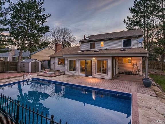 Welcome to this stunning remodeled home in the Brookvale neighborhood! With over $70,000 in recent upgrades, this home features 3,000 square feet of living space and a rare backyard heated pool for entertaining! With multiple family and eating areas, this open-concept main level is one of the largest in the neighborhood. The kitchen features new quartz countertops with island, luxury vinyl plank flooring, stainless steel appliances, pendant lighting, new paint, new trim, new carpet, new doors, and interior. Enjoy a finished sunroom on the back of the house which fills with natural light. Master bath includes a large shower with skylight. Bedrooms upstairs are oversized. The finished basement features a flex space, office area, and conforming bedroom with egress. The swimming pool, back deck, and mature trees make the backyard perfect for summer evenings! Pool has new liner, new pump, new heater and retails for $80K. Close to schools, park, Buckley AFB, Southlands Mall, new Rec Center, DIA, E-470, I-225, DTC, Anschutz Medical Center, Light Rail! You can't beat the value you're getting for this home. Don't miss out on this opportunity!