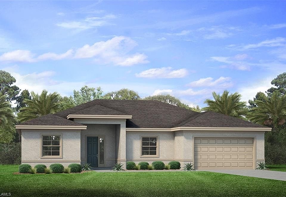 Looking for a new construction home with 3-car garage? And on a triple corner lot? This home is a perfect fit with 1,987 square feet, 3-car garage, 2 baths and 27' covered lanai. Brand-New Construction SIGNATURE HOME in SW Cape Coral is underway now. The JADEN is located in a desirable SW Cape Coral neighborhood close to shopping, dining, entertainment and everyday conveniences. This elegantly designed home boasts an open-living concept and extending outdoor living with a large paver lanai, 3 Bedrooms split floor plan + Flex Room, 2 Full Baths and 2 Car Garage and comes with granite kitchen & bath counters, 42" kitchen cabinets, 8-foot raised panel interior doorways, paver driveways and lanai, full irrigation system, professionally landscaped, and even a Smart Home package! The Owner's Suite offers two large walk-in closets at its entrance, providing added privacy. PLUS, we've added sophisticated options including 18-inch tile on a diagonal everywhere except the bedrooms, carpet in the bedrooms, stainless kitchen appliances including a refrigerator, blinds on all windows, and so much more! We offer several varieties of financing options with closing cost incentives and savings
