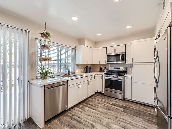 Experience the charm of this upgraded 2-story, 3-bedroom, 2.5-bath condo, just steps from UNLV. This rare find, with no shared walls and a private fenced backyard, offers unmatched privacy in condo living. Inside, enjoy modern upgrades, including new floors, upgraded windows, and all-new LED lighting. The stylish kitchen features sleek cabinets, countertops, and upgraded appliances. The condo also boasts new plumbing, a new HVAC unit, and a new water heater. Two sliding doors seamlessly connect your chic interior with the outdoor space, perfect for relaxation or entertaining. Discover your private oasis in the heart of Las Vegas.