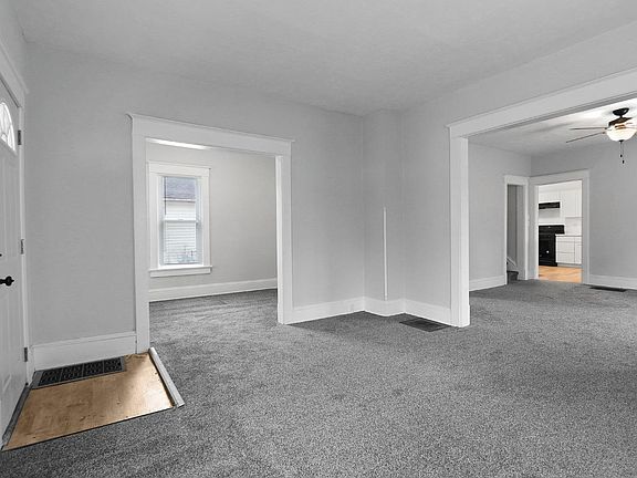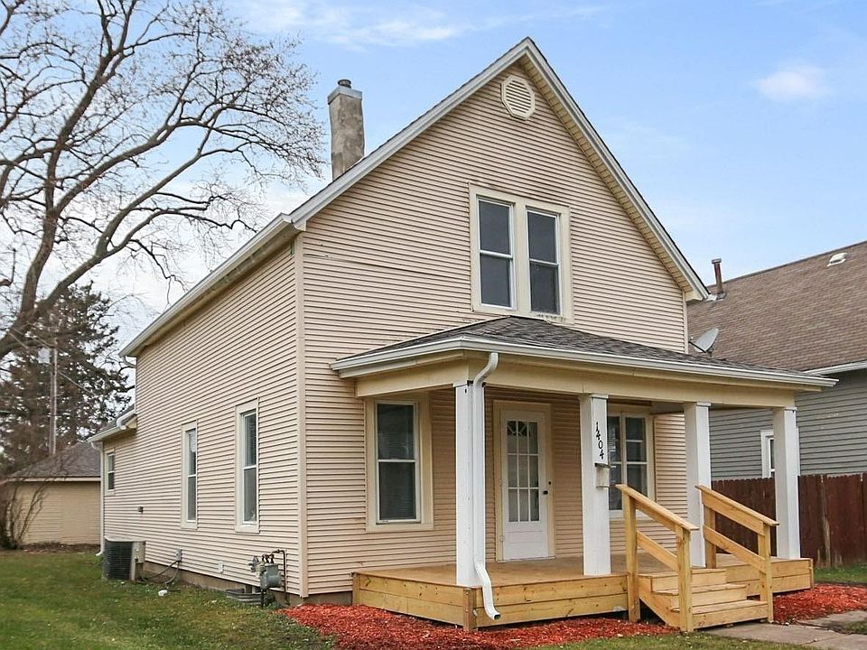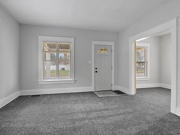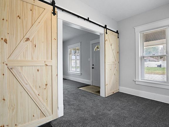 Welcome to your newly remodeled 1.5 style charmer! With a tasteful blend of modern updates this 3 bedroom/1 bath residence is move-in ready. Step inside to a renovated interior displaying new flooring extending through the home, brand-new bath complete w/ double sink vanity, fresh paint & new light fixtures. The spacious living area connects to the main level bedroom featuring sliding barn doors for privacy. The formal dining which is perfect for entertaining flows directly into the revamped farm-style kitchen, showcasing new cabinets, countertops & appliances. Adjoining the kitchen is a convenient mudroom, perfect for storing & keeping the home tidy. Ascending the staircase to the upper floor, the primary boasts double closets for your wardrobe needs while the other generously sized updated room finishes this level. Beyond the interior is a detached garage & full unfinished basement perfect for storage or expansion. Included: new roof/gutters, updated electric/plumbing & newer HVAC.