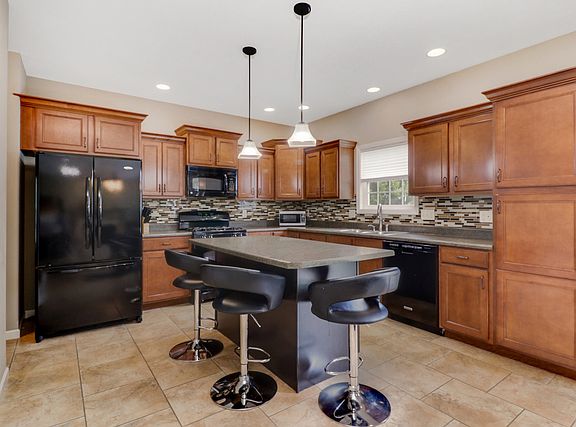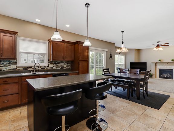Traditional 2 Story Home East side location in unit 5 school district. Open floor plan with eat in kitchen which comes with custom espresso cabinets, glass tile backsplash & large island and all appliances. Butler's pantry with matching espresso built-in cabinets with glass accent doors. Main floor family room has gas fire place. Beautiful hardwood floors in the formal dining room. HUGE master bedroom with spacious en-suite featuring a soaker tub , double vanity & walk-in shower. All 4 bedrooms on second floor with 2 full baths and convenient 2nd floor laundry. Washer and dryer stay! 2 Story foyer. 9 foot ceilings! 3 car garage with bump out with built in storage. Nice mud room with good sized closet. Huge fenced yard. Playground equipment stays! Large open unfinished basement with rough in for bath and egress window for potential 5th bedroom. All information deemed to be accurate but not warranted.