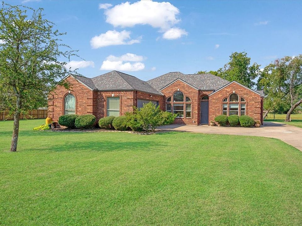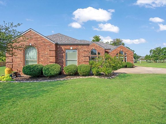 Escape to this quiet, cul-de-sac brick home in west Sherman on just shy of one acre. Conveniently located near Sherman High School, 1417, and Sherman Crossroads, this neighborhood still feels like country living with surrounding acre lots up and down the road. Walking into the home you are immediately greeted by tall ceilings, a spacious open floor plan, decorative windows, and tons of natural sunlight. Luxury vinyl plank flooring in kitchen and common areas, recessed ceilings with decorative centerpiece lighting, and large windows looking out to the backyard in the main living area. The kitchen boasts stainless steel appliances, granite countertops, and a breakfast bar adjacent to the breakfast nook overlooking the backyard. Primary bedroom is spacious and features ensuite bathroom with dual vanities, separate shower, jetted tub, and large walk-in closet. Step out to the large back porch with built-in sound system, exterior lighting, and plenty of space to grill and entertain - this porch is every host's dream! Plus, a large grassy backyard to run and play to your heart's content. This is the perfect home for anyone looking to stretch out, kick back, and enjoy this beautiful spacious property. Don't wait to call your favorite Realtor and schedule your showing today!