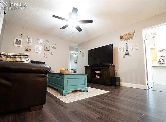 Welcome to the desired sub-area of Widefield Country Club Heights This property offers 3 bedrooms, 2 bathrooms and a 1 car garage oversized garage, a large lot with RV parking, lower level room is currently being used as an office/game room it could be converted to a 4th non-conforming bedroom. Stay cool with A/C for this summer and warm in the winter with a gas log freestanding stove . Enjoy barbecuing and entertaining on your large walk out deck. Walking distance to the park, minutes from I-25, close to the Military base, close to shopping and No neighbors behind you! Come see this one today!