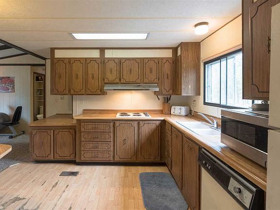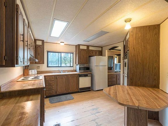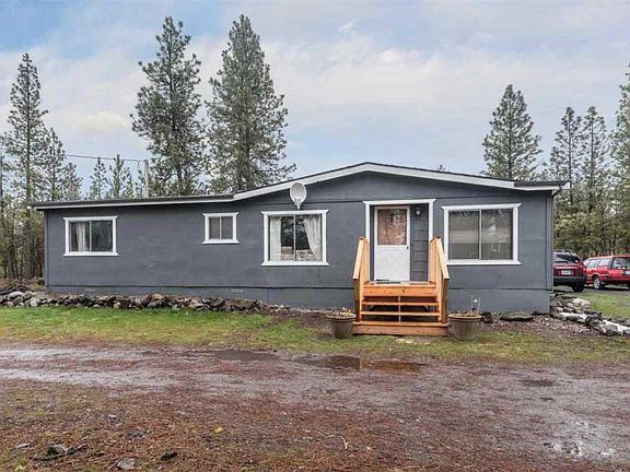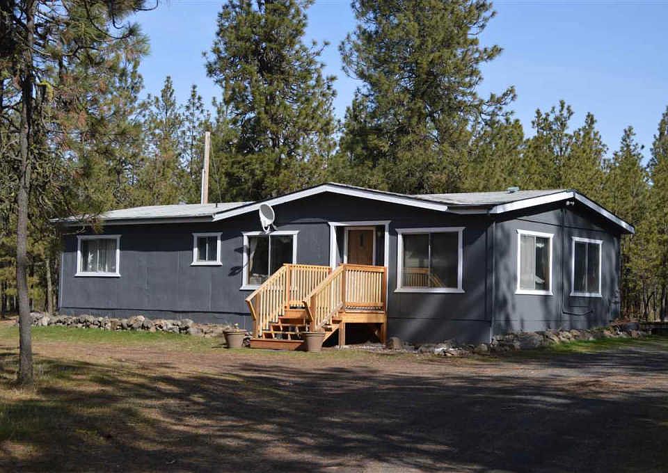 Peaceful setting under pine trees and sitting on over 5 ac of land. This double-wide has 2 bedrooms and two large bathrooms along with a shop. Country living close to Spokane. Easy commute to South Hill, downtown spokane, Airport, Fairchild. Freshly painted on the outside with new front porch.