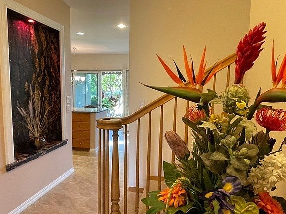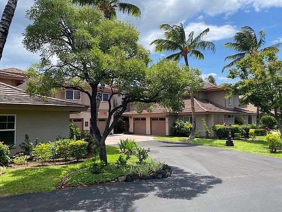 Waikoloa Colony Villas has been one of the best kept secrets on the Kohala Coast for its LIVE-ABILITY and GREAT VALUE FOR DOLLAR. Colony Villas is the only, all Townhouse floor plan community (with no one above or below) in the entire Waikoloa Beach Resort. All units get an attached garage and some, like #1404 have an additional DEEDED space!! 1446 Sq ft of interior, TWO LANAIS, one upstairs and one downstairs, 18'+ high ceilings in the living room, and an open floor plan that creates a comfortable gathering space for family and friends, this design layout is definitely a crowd pleaser! Waikoloa Colony Villas permits vacation rentals although Residence #1404 has had the same owners since 2005 and they have never rented it out. On the contrary, they have lovingly and lightly used it for 16 years as their respite/retreat from mainland life, a few weeks a year, and you feel the incredible care that went into any upgrade from the meticulously laid plank, ceramic tile flooring throughout the main level, to the tiled exterior lower lanai, to the stylish kitchen tile backsplash, to the CUSTOM LAVA ROCK WALL with custom lighting, featured in the entryway, honoring Pele' and our beautiful Big Island, pride of ownership beams throughout. The unit has a very welcoming energy about it and would be an ideal primary residence or second home. STVR permit could be applied for if you plan to rent it out. There are 3 floor plans at Colony Villas and this is the mid sized unit. Two bedrooms and two bathrooms are upstairs but separate from one another and there is a convenient half bath downstairs. This unit has a great golf course location, beautiful views, is peaceful and private, and #1404 is being offered w/ quality furnishings and decor, move in ready. Monthly fees include water, basic cable, trash pick up, pest treatments, maintenance of the exterior building, landscaping, and the TWO LAGOON STYLE POOLS, TENNIS COURT & the TWO WORKOUT ROOMS ~ E Komo Mai - Welcome