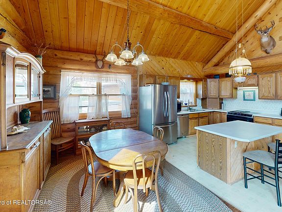 Discover a rare opportunity to own a residential and commercially zoned custom Swedish Cope log home, offering the perfect blend of rustic charm and versatility. Whether you dream of a serene personal retreat, where your loft could be your library, exercise room or art room - and you could also have your home based business, or simply a destination getaway, this unique property invites endless possibilities—limited only by your imagination. Extensive wrap around deck with large private Hot Tub to enjoy after your ATV ride, bike ride, fishing, horseback riding or just relaxing. Set against the breathtaking backdrop of 2.4 million acres of the Shoshone National Forest, this home places you at nature's doorstep. You are only 55 miles from Grand Teton National Park and a scenic drive away from Yellowstone National Park, home of the iconic Old Faithful geyser. Adjoining commercial lot to the west and a home site lot bordering the property to the north are also available for purchase for the Buyer. Request pricing for these additional properties. These properties would allow for expansion of your business or the potential to build another home.