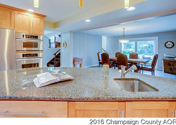 Looking for that one of a kind home? This is it! Contemporary styling with lots of space and functionality in the heart of Champaign with golf course views! Vaulted ceilings, tons of natural light, and a daylight basement. Remodeled kitchen features stainless appliances, maple cabinetry and granite tops. The 5th bedroom is on the 1st floor and would make a nice office or guest room. Gorgeous master suite with amazing views and a separate sitting room/office/nursery attached. Large custom closet and spa like bath with double vanity, walk in shower and large tub. Approx .63 acre lot mature trees and new landscaping. Some new windows, doors and carpeting through home. Huge 3 car garage, mudroom, circular drive, portico. Exterior Painting in progress (Oct 2016)