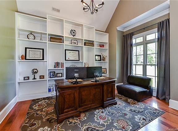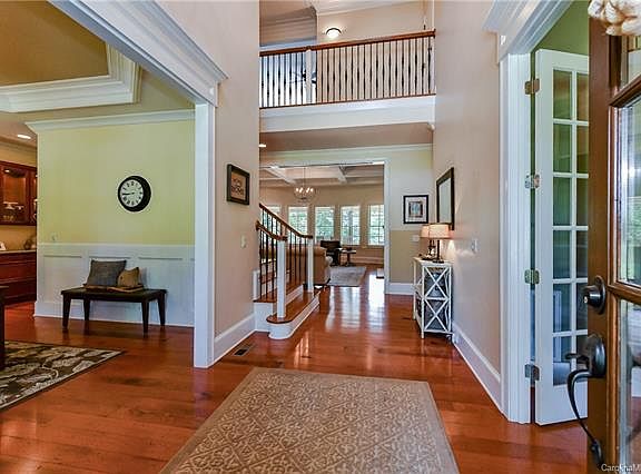 Breathtaking private waterfront home on almost an acre of land in the sought after gated community of Waybridge in Weddington. Open floorplan, tall ceilings, beautiful hardwoods, master and guest suites on main, library, home office, two bonus rooms, huge gourmet chef's kitchen with upgraded SS appliances and large island open to keeping room with fireplace. Three car garage, incredible outdoor living spaces including a front porch, screened in porch, covered patio and lower patio with firepit and hot tub overlooking a beautiful neighborhood pond stocked full of fish. Top ranked Weddington schools. Don't miss this one of a kind home!