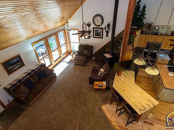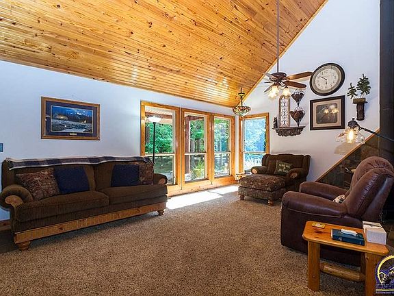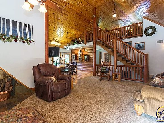 Very private treed 6 acres for this log sided 1.5 story. 4 or 5 BR, 3 1/2 Baths, over 3600 finished sq. ft. Walkout basement, huge covered front porch. Super nice property!!