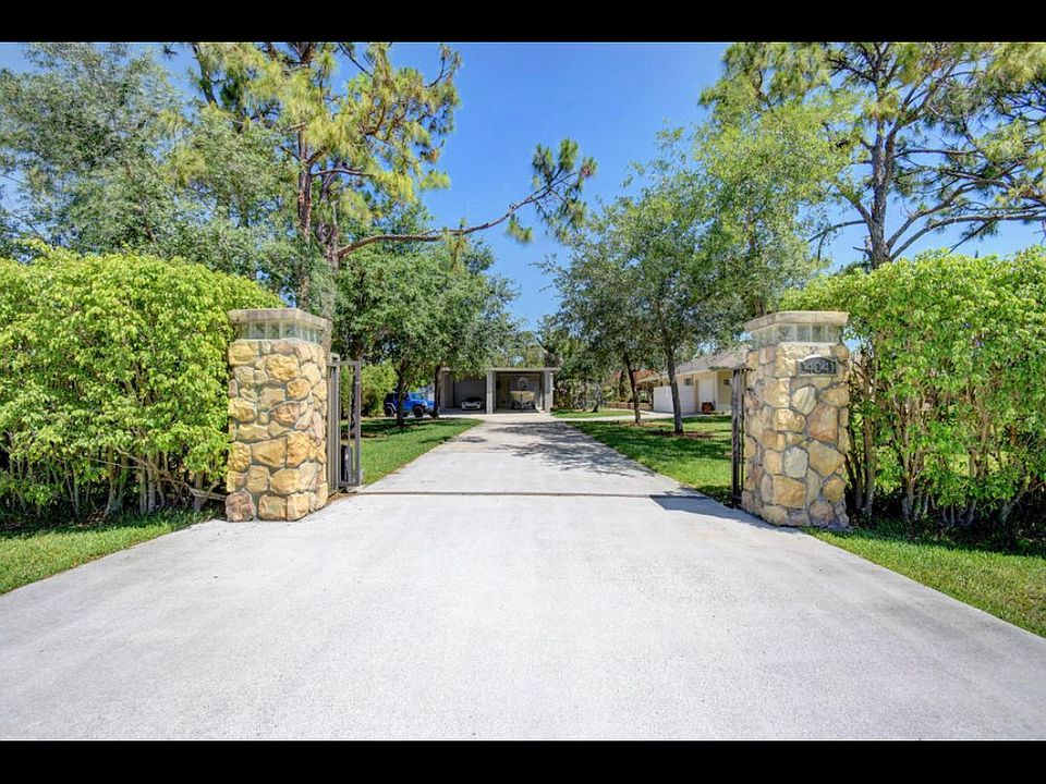 Don't miss out on this Beautifully updated 3 Bedroom/2 Bath Pool Home in the desirable equestrian community of The Acreage. This Corner Lot Home sits on 1.29 acres has tons of custom upgrades and is "Move in Ready"! Brand new roof completed in July 2021. Custom wood work and beams throughout, stainless steel kitchen, custom doors, hardwood floors, vaulted ceilings, granite, upgraded tile in bathrooms and open concept with split floor plan. Amazing pool with firepit, paver deck, huge covered porch, pergola, gazebo and fishing dock (Pool and Patio Furniture included) Garage/Workshop is 1200 sqft. includes car hydraulic lift, industrial ice machine, cabinets and TV's. 1600 sqft. concrete covered boat/RV storage. Public Water! Electric Security Gate! Well Sprinkler! This home has it all!