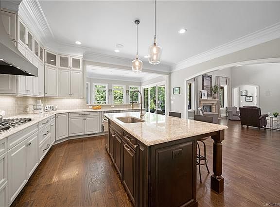 Have the best of both worlds, gated country living but close to everything. Stunning custom 5 bedroom/5.5 bath home on a 4-acre estate lot with all the bells and whistles. Open gourmet chef's kitchen with large island, double ovens, gas cooktop, warming drawer, Cambria quartz counters, ss appliances, butler pantry with beverage cooler. Downstairs bedroom ensuite has a separate entrance perfect for mothers-in-law, nannies with an adjoining sunroom perfect for a craft room, or even an additional office that overlooks the pool. Master suite has a sitting retreat with another beverage cooler and private balcony overlooking your manicured lawn. Master bath w/soaking tub, dual shower heads in huge walking shower. Enjoy your backyard retreat with outside fireplace, heated pool, and firepit. No need to ever leave your private paradise unless you want to slip away to nearby Birkdale for shopping, restaurants, or venture to the quaint village of Davidson.