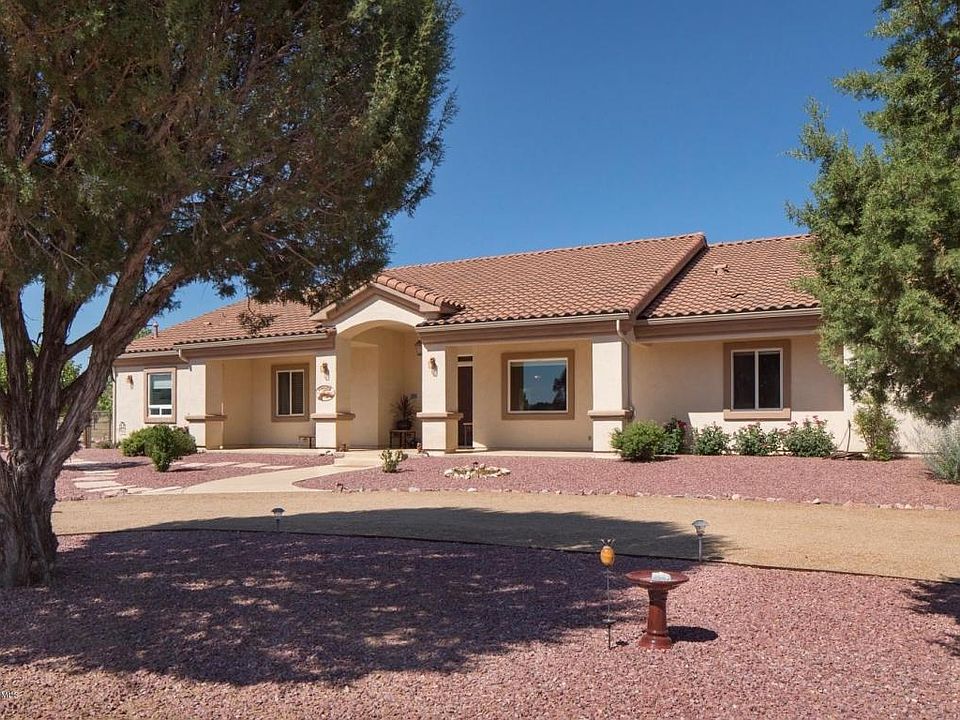 Privately situated single level home in Inscription Canyon with 6 bedrooms, 41/2 baths on 2.66 useable acres. This home has it all with both formal & informal living & dining areas. New features include wood flooring, paint, dishwasher, Wolf brand 5-burner gas cooktop, carpet in 5 of the bedrooms, ceiling fans, landscaping, irrigation, trees, lawn & solar lighting. Radiant floor heating & extra insulation make this home energy efficient. Many of the bedrooms are suites. Master bedroom features wood-look tile, luxury jetted tub, his/hers walk-in closet and single French door to the back covered patio. Attached 1470 sf 4-car garage has epoxy coated flooring, builtin cabs & is heated plus detached 408 sf workshop/bonus space. Living continues outdoors w/front porch, covered and open back patio