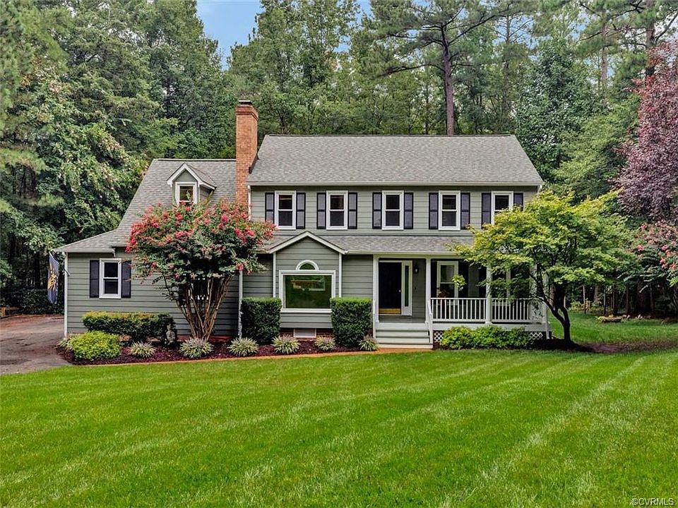 Chesterfield (Area 54;Windsor Park) Tucked in the quaint neighborhood of Windsor Park, this beautiful home is situated on a 1 acre lot and boasts 5 bedrooms, 3 bathrooms, 2,724 sq ft, updated eat-in kitchen, updated baths, first and second floor hardwoods, side entry 2-car garage, full front porch, paved driveway with parking pad, front and rear irrigation, fenced in rear yard, and mature landscaping and 36' 2-tiered deck overlooking yard w/sidewalk and concrete pad which connects to outdoor shed! Windsor Park features tennis courts, pool, walking trails, street lights, club house & a private pond with gazebo.