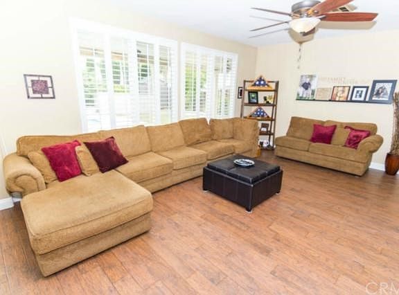 Youâll love this gorgeous two-story home located in the heart of Eastvale. The home is situated near the end of a cul-de-sac, and is a north facing home. It features vaulted ceilings in the formal living and dining room, tile floors that resemble distressed hardwood, the open kitchen is adorned by full granite counter tops, upgraded appliances and boasts dark stained cabinets. The bright master suite offers a separate seating area that could be made into a 6th bedroom, the master bath includes dual vanity sinks, separate tub and shower, and an organizational system in the walk-in closet. As you walk into the backyard, you are greeted by a large patio with roman pillars, stamped concrete, alumawood patio cover and a beautiful pool/spa that is surrounded by upgraded landscaping and huge palm trees. The home is located in a cul-de-sac, walking distance to Clara Barton Elementary and park. To truly appreciate all that this home as to offer, one must experience it in person.