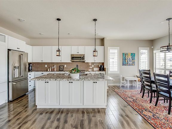 Indulge in the beauty of a bright and white kitchen with granite countertops, complemented by an abundance of storage space and gleaming luxury vinyl tile floors. The updated kitchen boasts a high-end $4,000 Induction cooktop and stainless steel appliances, while recent upgrades, including a new humidifier, HVAC, storm door and whole-house water filter, ensure modern comfort. The thoughtful design extends to a primary bath featuring a skylight and surround system, custom built-ins in both the office and primary bedroom's closet and a convenient upstairs laundry room. Discover versatile living spaces, including a loft playroom/family room and a sophisticated main floor office adorned with custom built-ins.