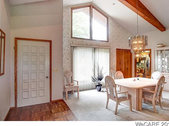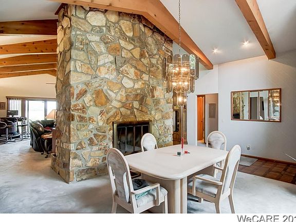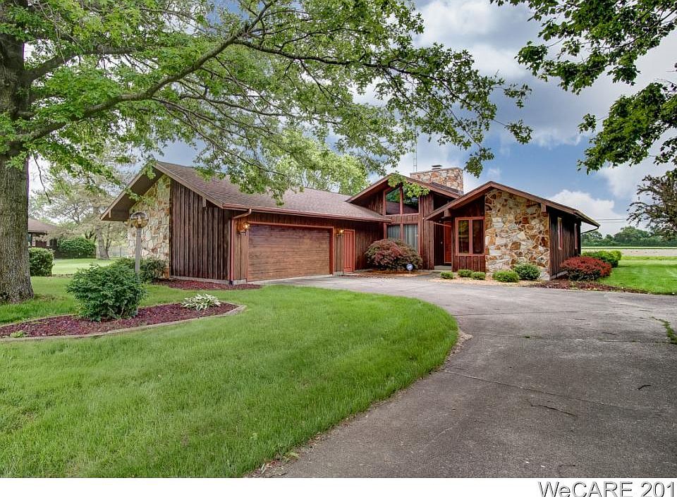 Beautiful well maintained move in ready A-Frame. Over 2100 sqft and a 2 car attached garage on 1/2 acre. Cathedral wood beam ceiling, large stone fireplace facing both dining and family room. Just outside Van Wert in Lincolnview School District. NOTE: In the future, the residences of Overholt Rd., may be required to tie into the central sewer system.