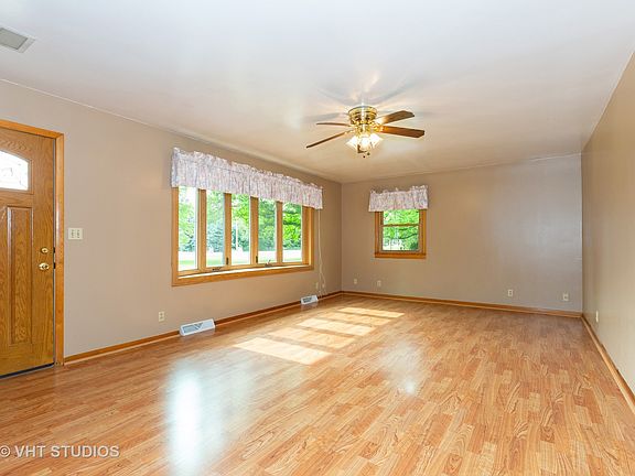 You will love the covered back porch and the big park like yard with beautiful oak, pine and maple trees on 1.05 acres. Then step into the well taken care of 3 bdrm ranch home with big eat in kit with pull outs in cabt's and all applncs (Dishwasher As-Is).The LVR is big and bright w/ a big bay wndw and newer frnt door. There is a partially finished bsmnt for more living space and plenty of storage and laundry area. Wait till you see the 40x24 detached garage with heated work shop. There is a 3rd garage door on the side into the work shop but wait there's another 30x18 out building for more storage. There are wndw panels and door's for the covered porch to use in the cooler months. Gutter guards on home and grg with work shop. High efficiency furnace 2012. New holding tank 2016, water softener 2012. New motor in well casing 2016. All windows in home 2000. This is an Estate Sale and being sold As-Is. John Deere is for sal