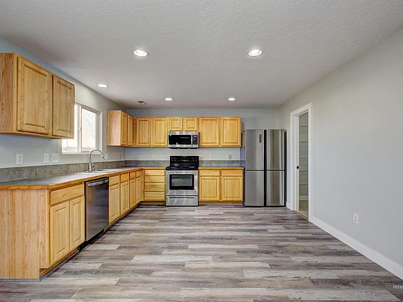 This spacious home boasts five bedrooms, providing ample space for your family, guests, or even a home office. The flexibility of these rooms allows you to customize them according to your needs. The large master suite is a highlight. It includes a master bathroom for your comfort and convenience. Imagine relaxing in your private oasis after a long day! The master suite also features a walk-in closet, perfect for organizing your wardrobe and accessories. The home has been thoughtfully updated with new floors and fresh paint throughout, enhancing its appeal and creating a welcoming ambiance. The huge yard invites outdoor activities—whether it’s gardening, playing with kids, or hosting gatherings. Enjoy the fresh air and sunshine! Situated in a great neighborhood within the Vallivue district, you’ll have access to nearby schools and community amenities. Overall, this home offers both comfort and functionality.